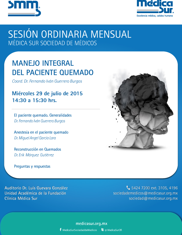 Inicio > Grupo Médica Sur > Sociedad de Médicos > Eventos académicos y socioculturales > 2015 > Sesion-Ordinaria-Mensual-2015 > Manejo integral del paciente quemado 2015